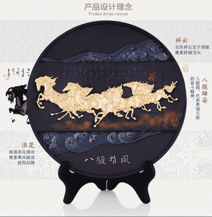 活性炭雕 八骏雄风工艺品办公室装饰品摆件定制