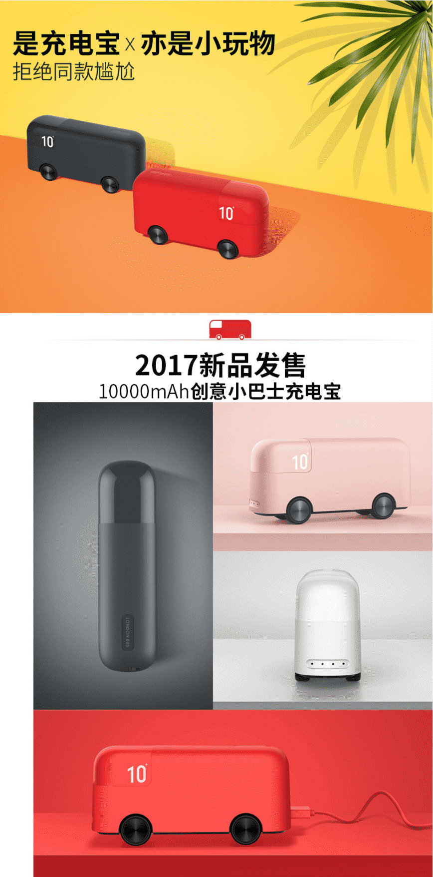 抖音复古充电宝10000毫安 超薄小巧便携巴士移动电源定制
