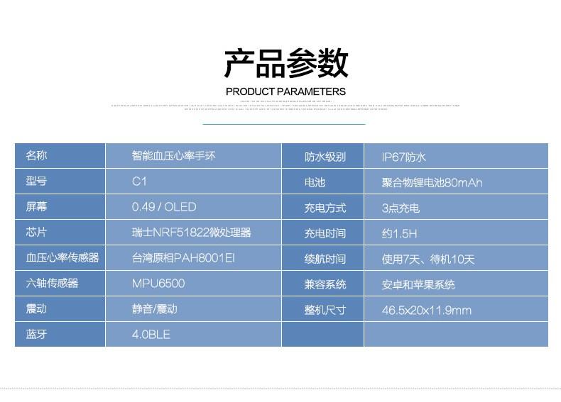 池古 C1智能血压手环 心率睡眠监测 蓝牙运动计步防水手环