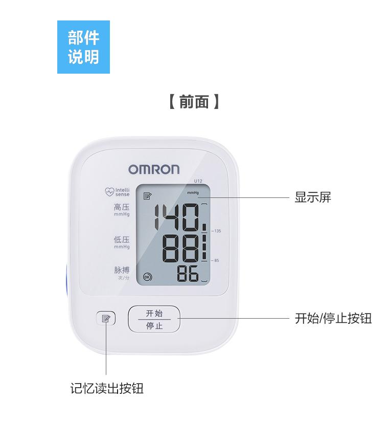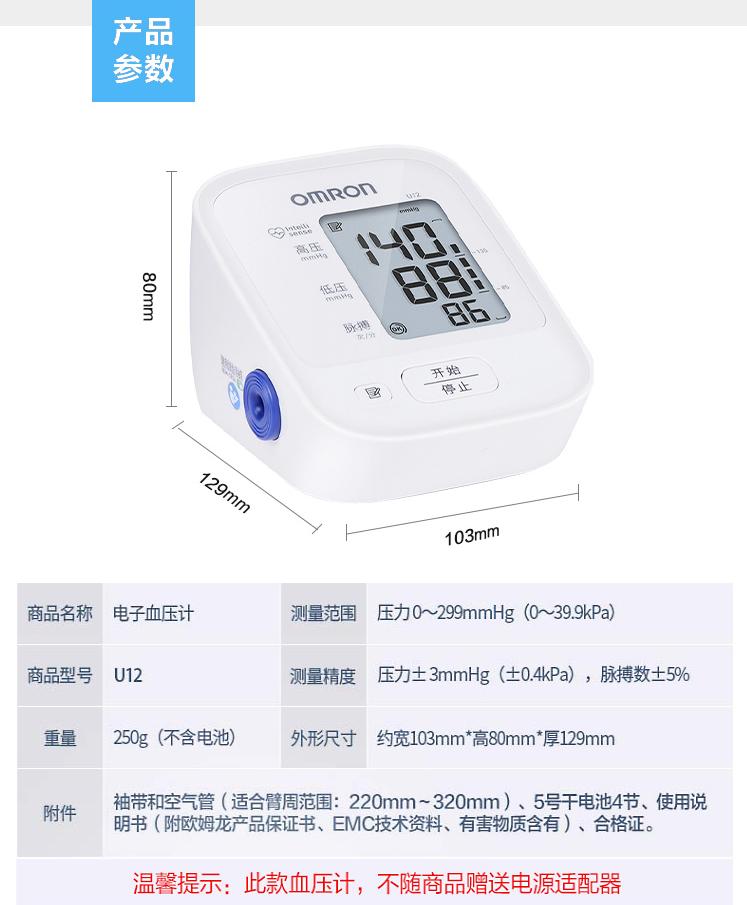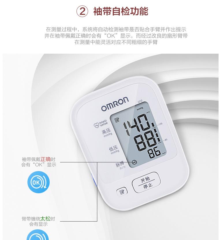 欧姆龙(OMRON)电子血压计上臂式测量血压家用血压仪智能血压计U12