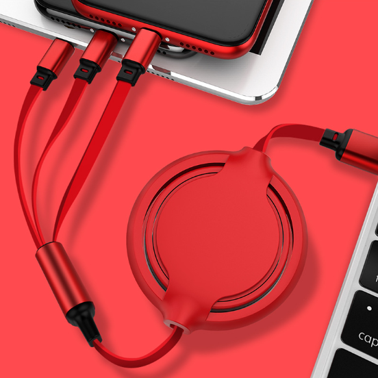 圆弧伸缩双拉一拖三数据线三合一充电创意礼品定制企业logo