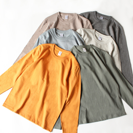 UL265g全棉重磅咔叽纯色无缝桶织 打底圆领长袖T恤定制Logo